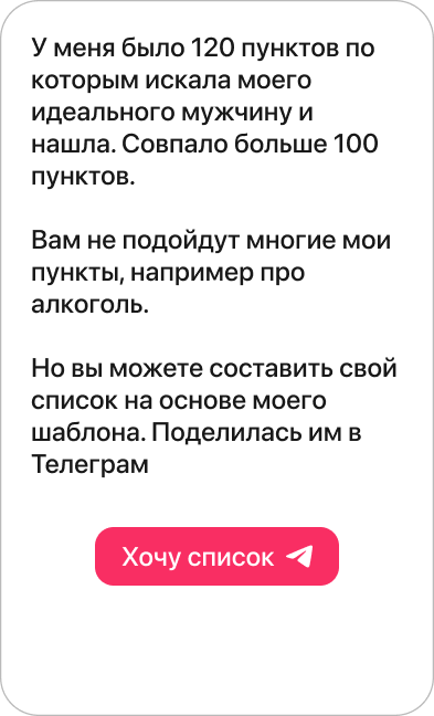 В Телеграм делюсь своим методом поиска идеально-подходящего мужчины